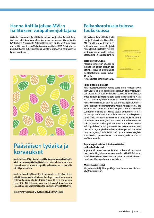Hän toimii myös Meijerialan Ammattilaiset MVL Satakunta ry:n